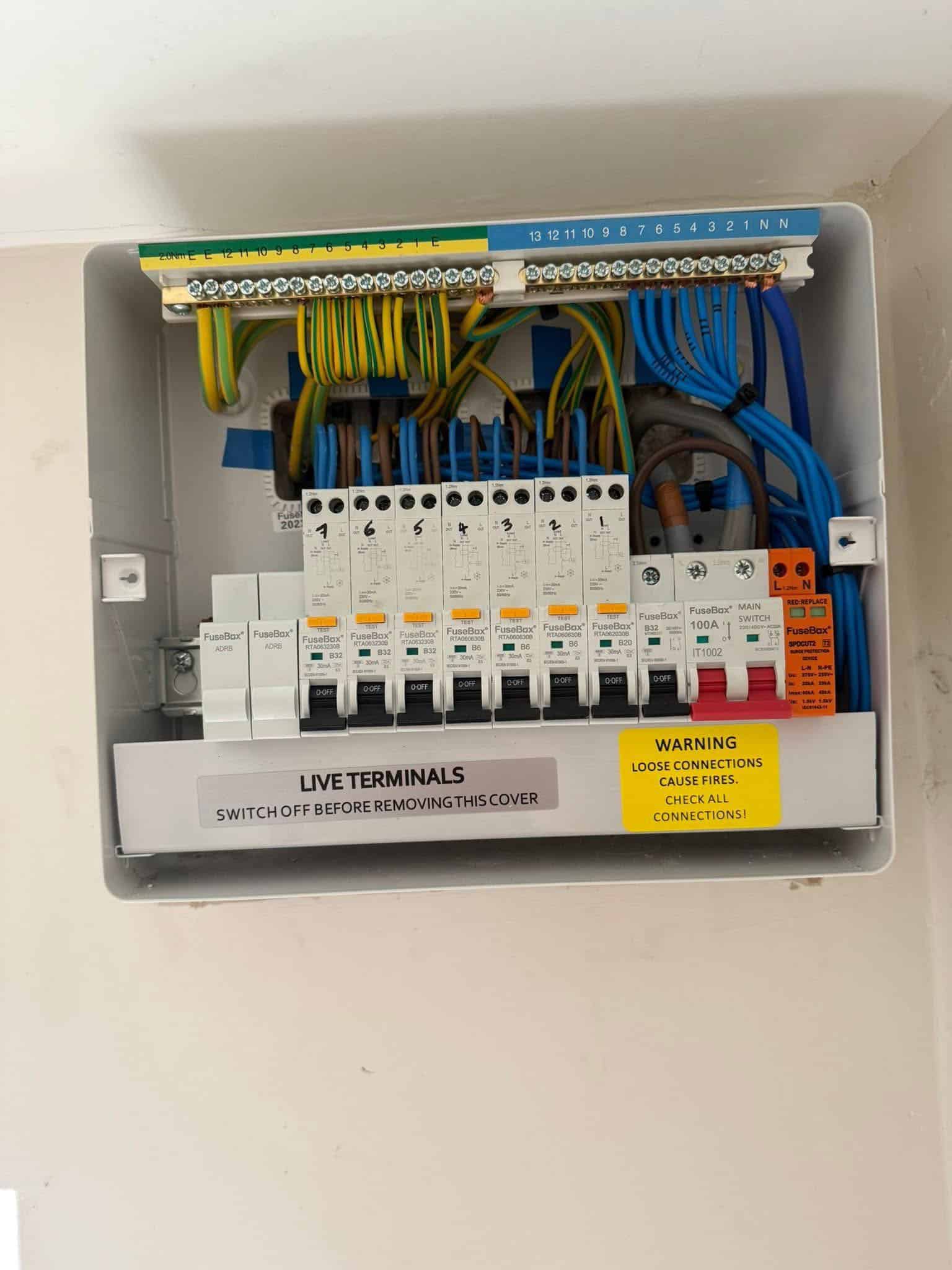 Awesome lad. I tried to rewire a light fitting but kept knocking out other lights. Came down, sorted that then relabelled existing parts of our fusebox, whilst navigating two 7yr old girls running around the house. We'll definitely be using you again! Thank you.