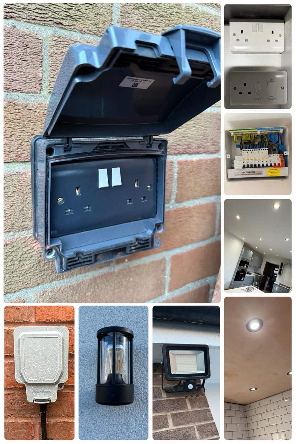 Switchboards + Fuseboxes + Bathroom & Kitchen Extractors + Electric Showers + Additional Plug Sockets + Garage Electrics + External Power + Garden Sockets + Security Systems + Security Lighting + Garden Lighting + Network Installation + Appliance Installation + Emergency Call Outs + Internet & Communication Cables + More